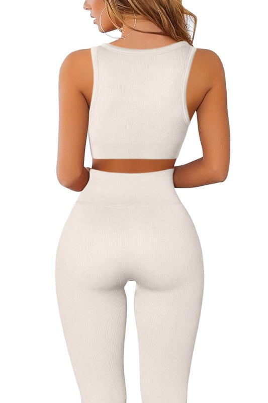 QINSEN Womens Yoga Leggings 2 Piece Outfits Running Crop Top Seamless High Waist Leggings 02 Beige MRegular price $52.49 USDRegular priceUnit price / per$58.99 USDSale price $52.49 USD- 11% -