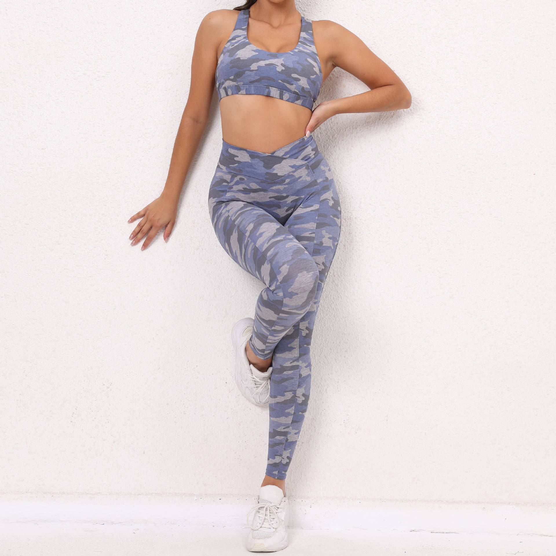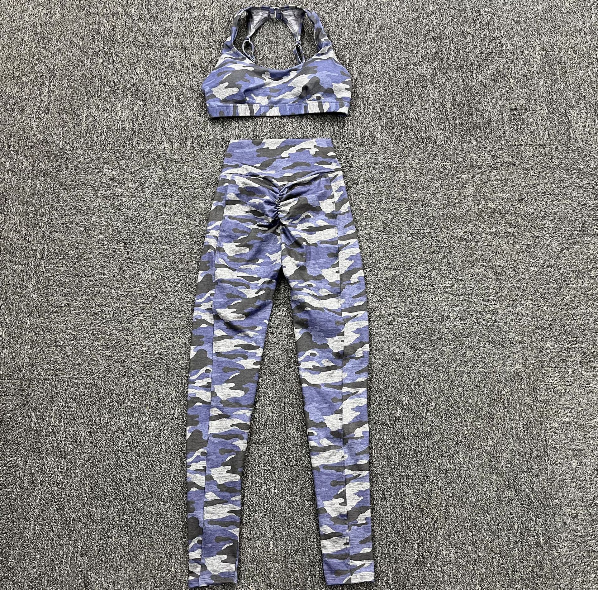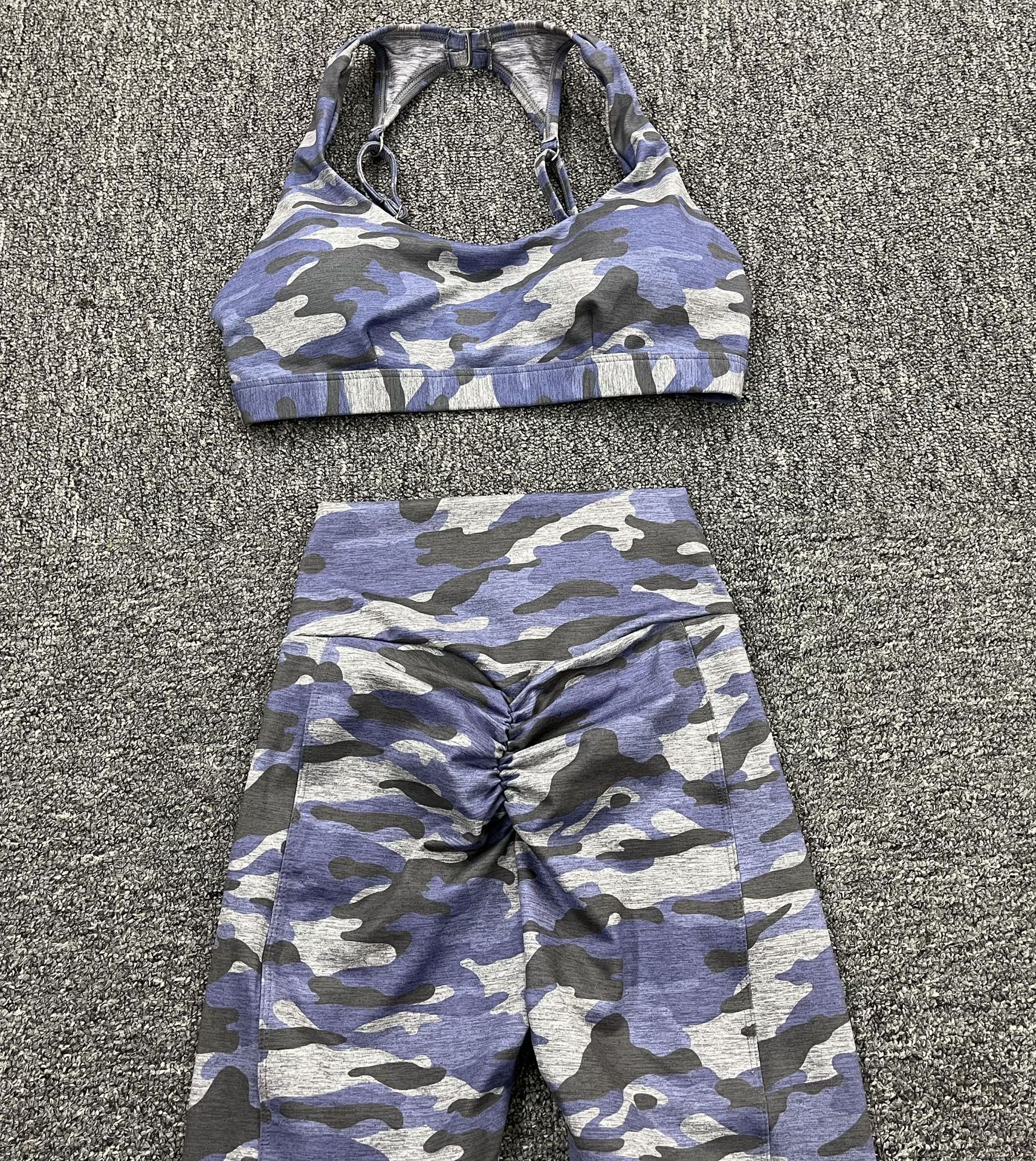 QK 2025 Camo Sports Bra Squat Proof Scrunch High V Waist Leggings Yoga Sets Fitness Workout Gym Pant Women Running Active Suit
